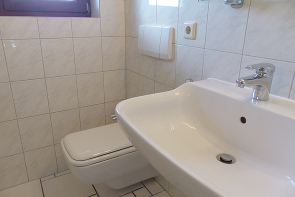 Ebenso ist in der Küche eine Vorrichtung für Ihre Waschmaschine vorhanden. Das hell-neutrale Tageslichtbad verfügt über eine Badewanne mit Duschabtrennung. Die helle Sanitär-Installation ist sehr gepflegt.