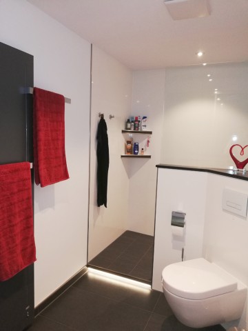 Das Bad wurde komplett erneuert und ist mit einer begehbaren Dusche ausgestattet. Ein Handtuch-Heizkörper sorgt für behagliche Wärme. Besonderer Pfiff ist hier der durch eine Schiebetür-Anlage abgetrennte Hauswirtschaftsbereich, clever in den Raum intengriert für Waschmaachine und Trockner. Genießen Sie hier Ihre persönliche Wellness-Auszeit…