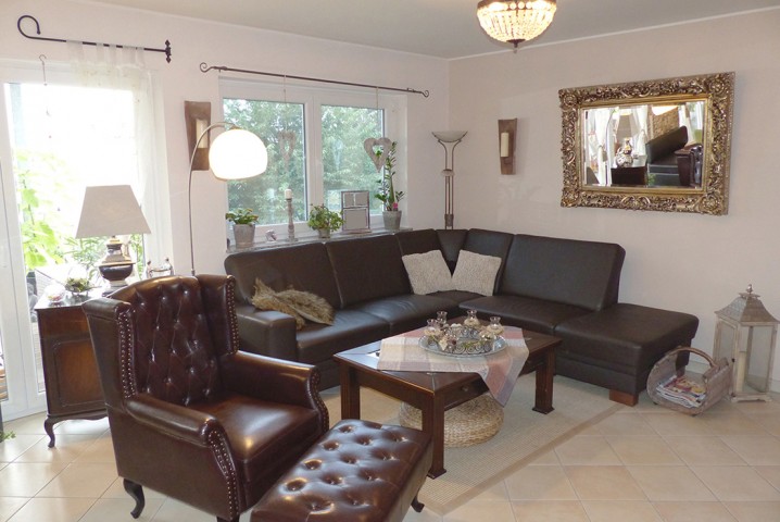 In der angrenzenden Küche findet eine schöne Einbauküche Platz. Zaubern Sie hier kulinarische Ideen für Ihre Gäste: Viel Freude beim Kochen und Genießen!