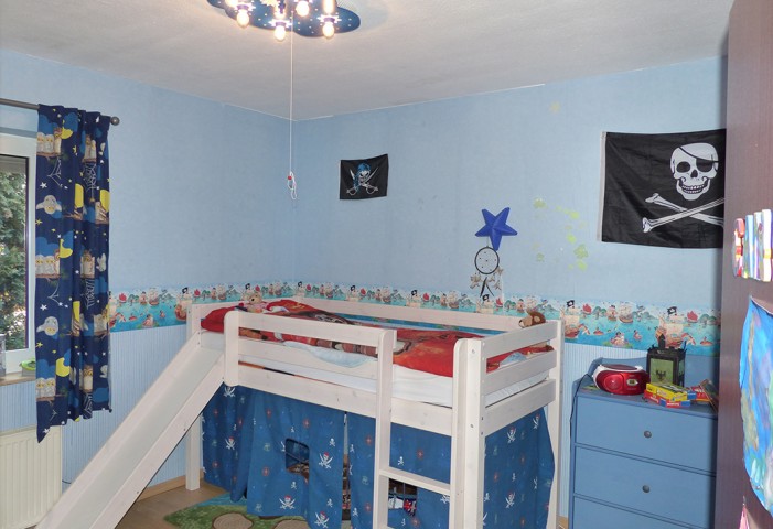 Ebenso bieten alle weiteren Zimmer ausreichend Raum zur optimalen Nutzung. Mit ca. 14 qm kann das Schlafzimmer individuell gestaltet werden. Zwei weitere Zimmer mit jeweils ca. 11,5 m² stehen Ihnen als Kinder- oder Gästezimmer / Büro zur Verfügung. Ganz nach Wunsch: spielerische Kindheit oder Arbeitsplatz? Ebenso bietet der Flurbereich genug Stellfläche für alltägliche Dinge wie Spiegel, Garderobe und Schuhschrank. Der Abstellraum komplettiert das Raumangebot und lässt Staub-