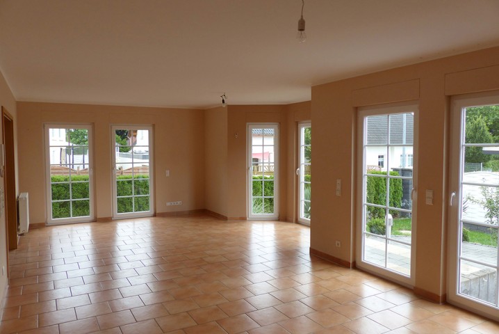 - offene Raumstruktur im gefliesten Wohn-Essbereich