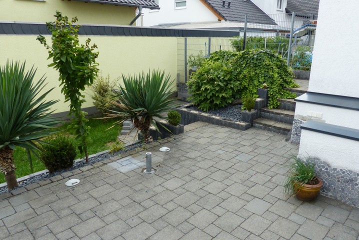 - angelegter Garten/Terrasse, Zugang Garage/Keller