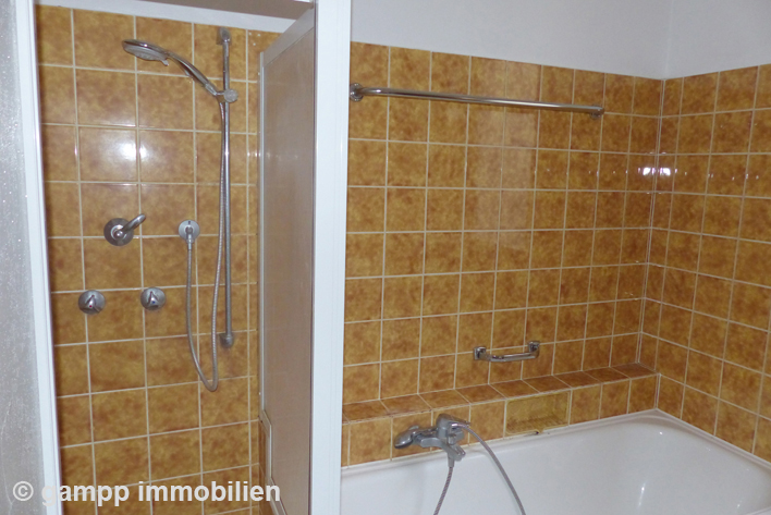 Ihr hinter dem Zwischenraum befindliches Tageslichtbad verfügt über Badewanne und Dusche. Das WC wird vor Einzug erneuert.