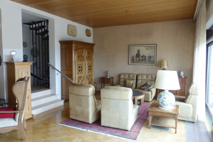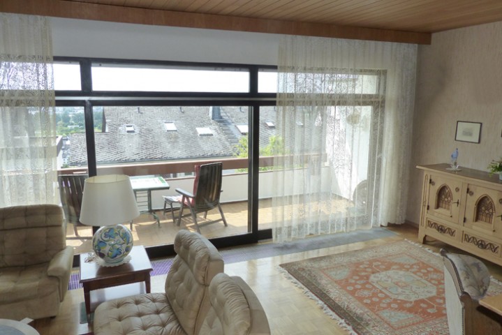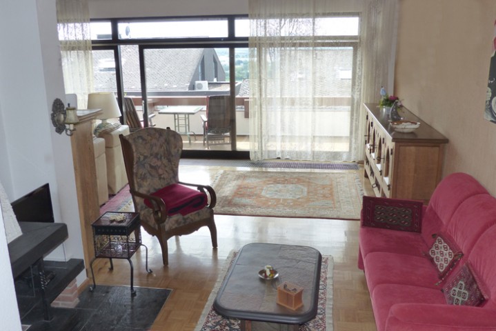 Über eine Echt-Holz-Treppe erreichen Sie die weiteren Etagen. Im 1. Obergeschoss finden Sie Ihre Wohngenuss-Etage – ein großzügiger Wohn-Essbereich in offener und heller Raumstruktur, auf ca. 42 m² ist Ihr neuer Raum für kommunikatives Miteinander. Der Wohnraum ist durch bodentiefe Fenster-Elemente hell und die Kamin-Ecke sorgt im Winter für warme Gemütlichkeit. Über die bodentiefe Schiebe-Anlage betreten Sie den Balkon mit Blick in Richtung Rhein.