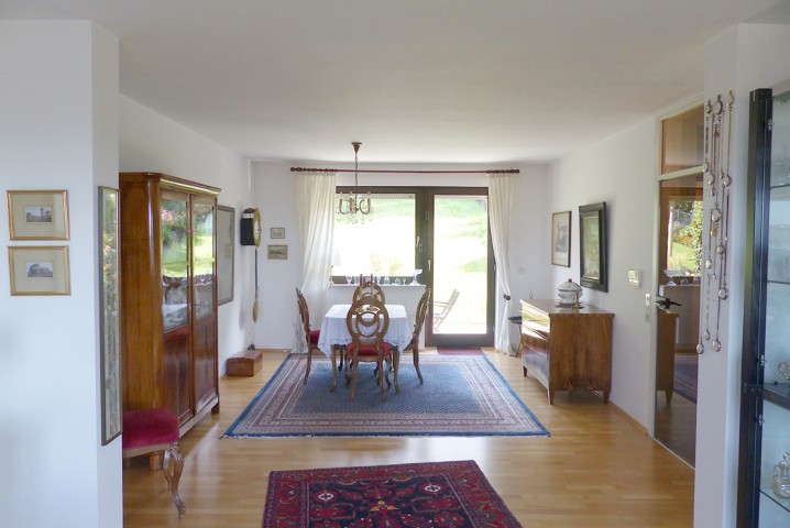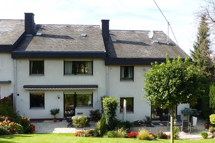 Vom Essbereich aus öffnet sich Ihnen die Tür zur Außenfläche. Terrasse und Garten sind ebenerdig zu begehen. Durch die terrassierte Bauweise des Hauses liegt die Wohn-Ess-Ebene im rückseitigen Hausbereich quasi im Erdgeschoss.