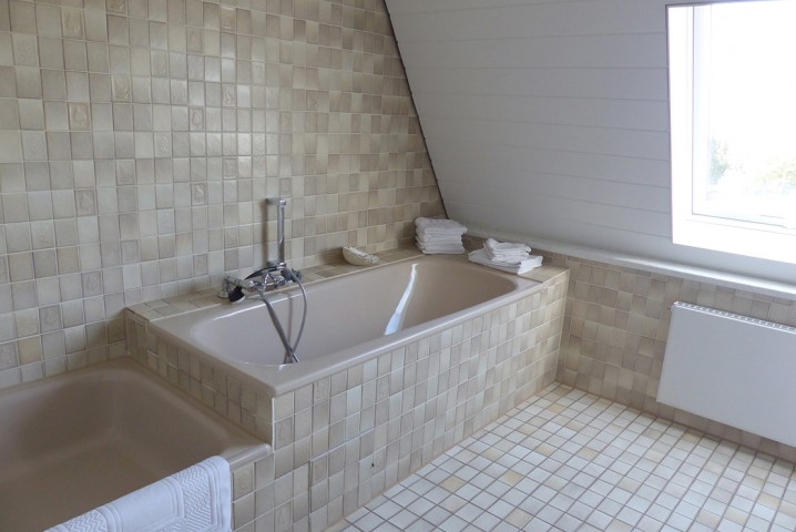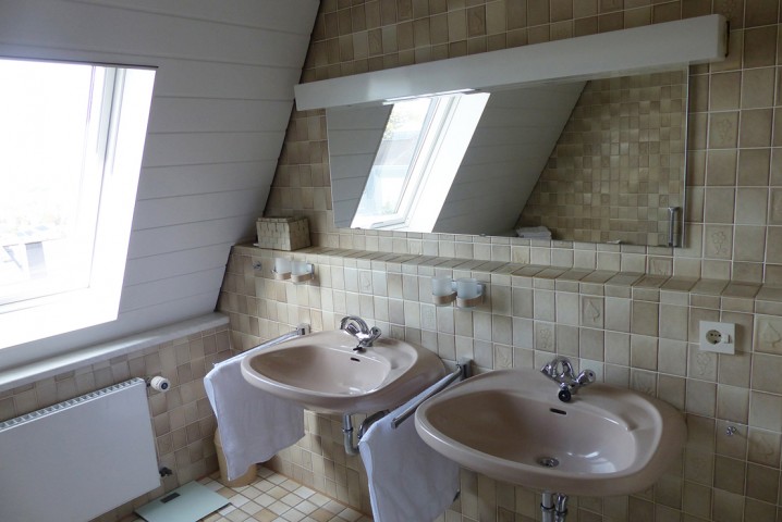 Das Tageslicht-Bad ist mit Wanne und Dusche ausgestattet und verfügt über einen Doppel-Waschplatz. Das vom Bad getrennt installierte WC komplettiert die Sanitär-Anlagen.