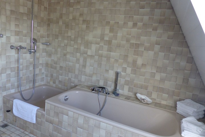 _ Bad mit Wanne und Dusche, Doppel-Waschbecken